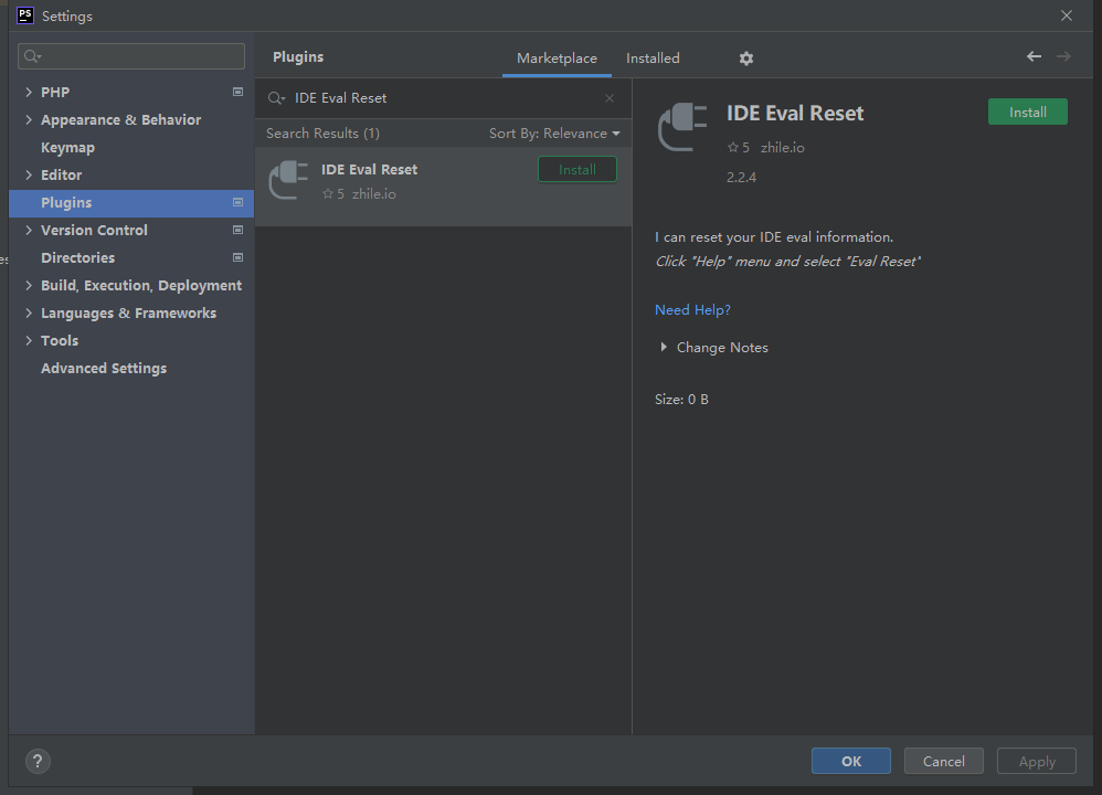通過插件市場安裝 IDE Eval Reset 無限 jetbrains 試用插件